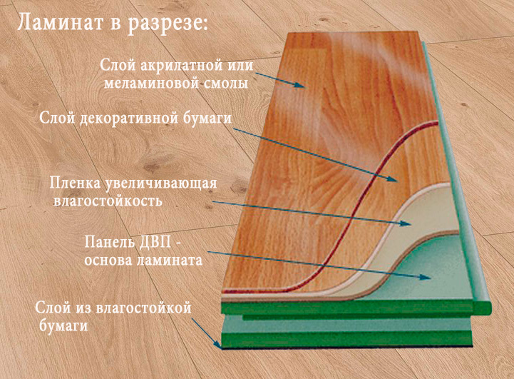 Le stratifié peut être appelé plancher stratifié, qui remplace le plancher en bois massif coûteux et répète la forme et le décor des carreaux de céramique, pierre naturelle. Il consiste en une base - une densité élevée de panneaux de fibres ou de particules minces. Différentes couches de papier sont empilées par étapes et les résines les imprègnent. Ensuite, les couches sont l'une des méthodes suivantes sont collées ensemble, pressées sous forte pression avec la participation de haute température.