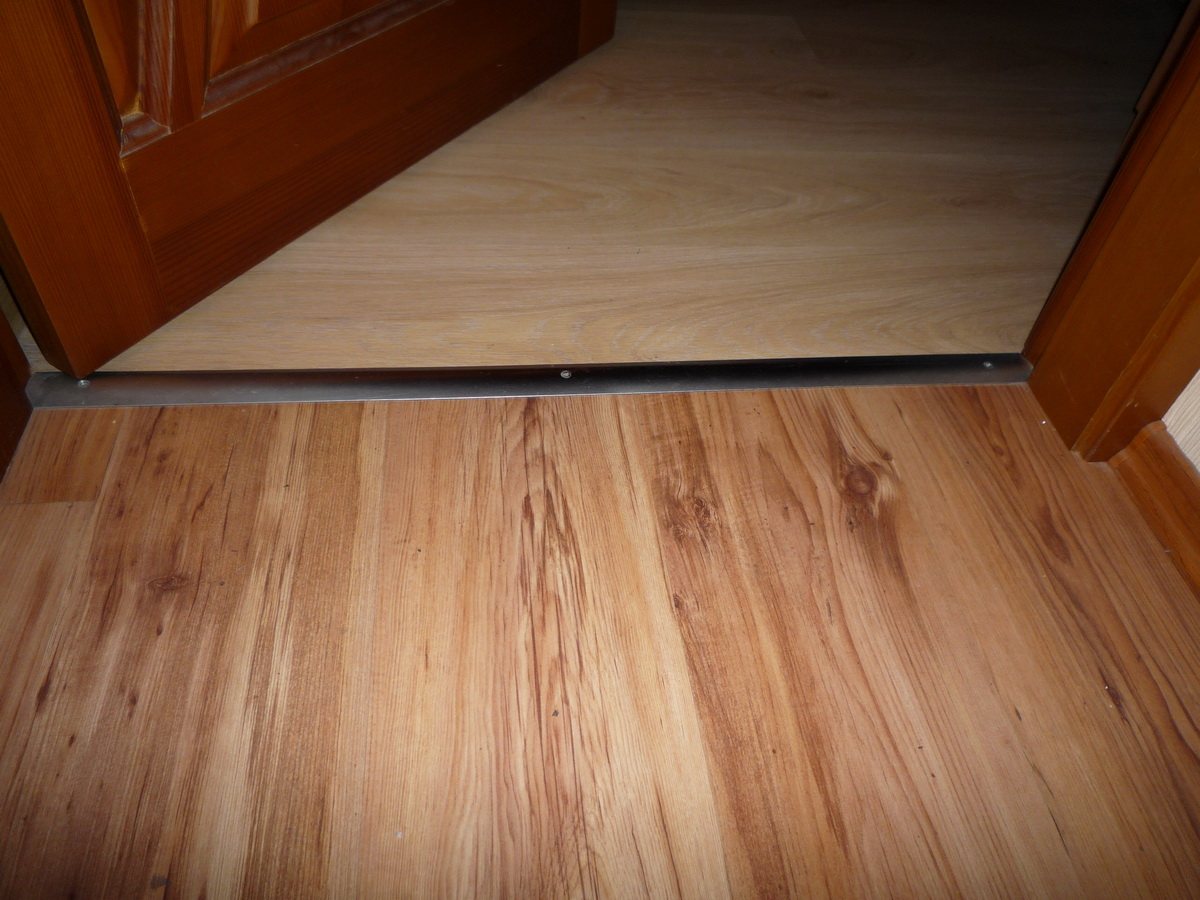 Une petite différence de hauteur (jusqu'à 1 cm) implique l'utilisation de seuils de Kanta. Il s’agit d’une bande d’aluminium recouverte du décor souhaité avec une couche de caoutchouc. La couche de caoutchouc compense cette petite différence de hauteur.