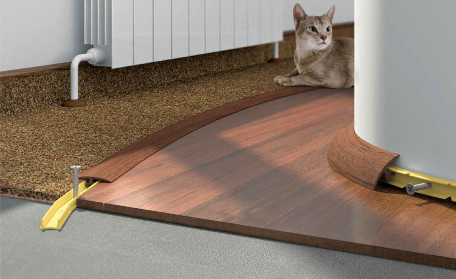 Ces produits assurent la protection et l’entretien du sol. Il est difficile de poser le stratifié dans un tissu continu dans toute la maison. Il est plus facile de le monter séparément dans chaque pièce, en reliant toutes les parties du revêtement posé avec des rebords, qui sont une sorte de composant pour le revêtement de sol.