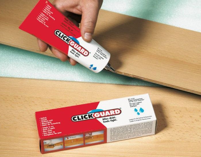 Les scellants sont utilisés au stade de la pose, posés aux extrémités des planches. Ils peuvent être groupés avec revêtement ou achetés séparément. Les mastics protègent les serrures et les panneaux eux-mêmes de l'humidité, empêchent la poussière et les débris de pénétrer dans les joints et les joints.