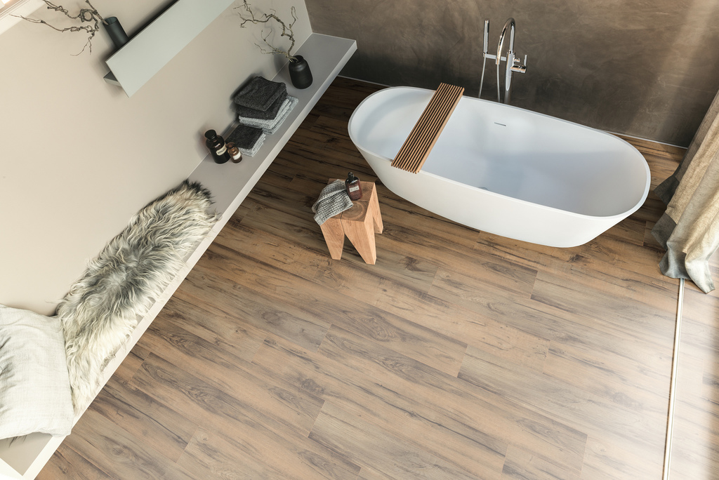 "Pro Stratifié" Créé par la technologie Aqua + spécialement pour la salle de bain, la cuisine et le couloir. Cela coûte moins cher que les carreaux, mais pas moins résistant à l'humidité. Les sols stratifiés peuvent être nettoyés avec des nettoyeurs à la vapeur. Un tel plancher donnera de la joie pendant plus d’un an et mettra en valeur le design de la pièce.