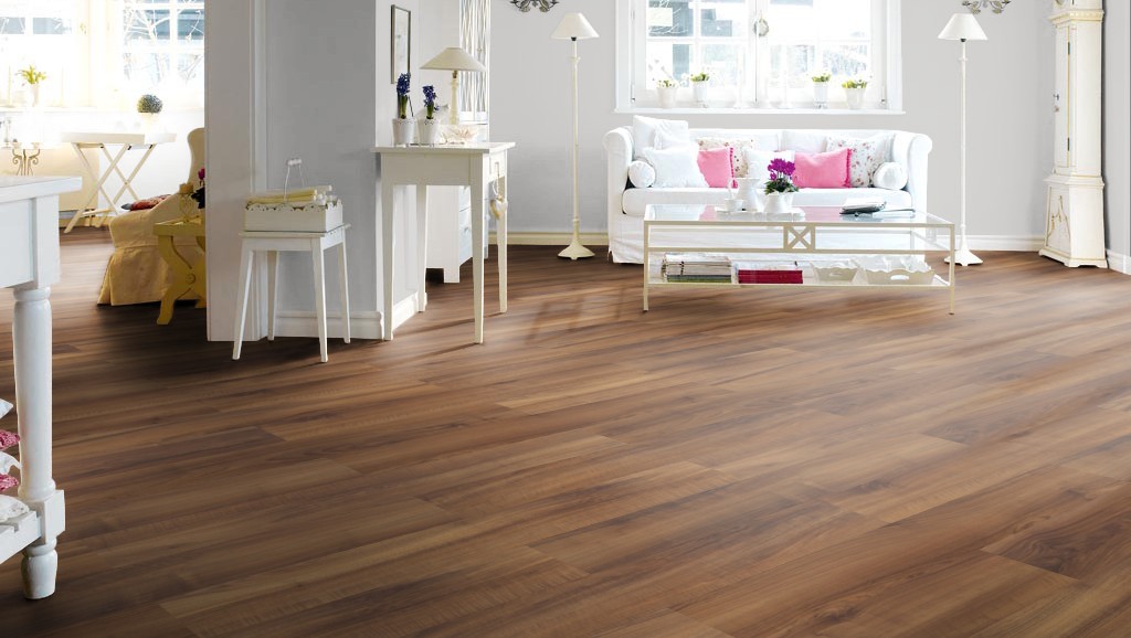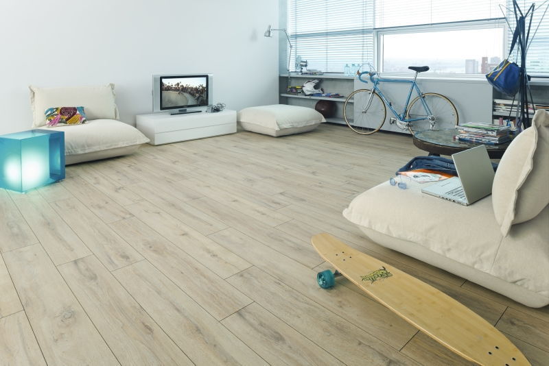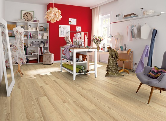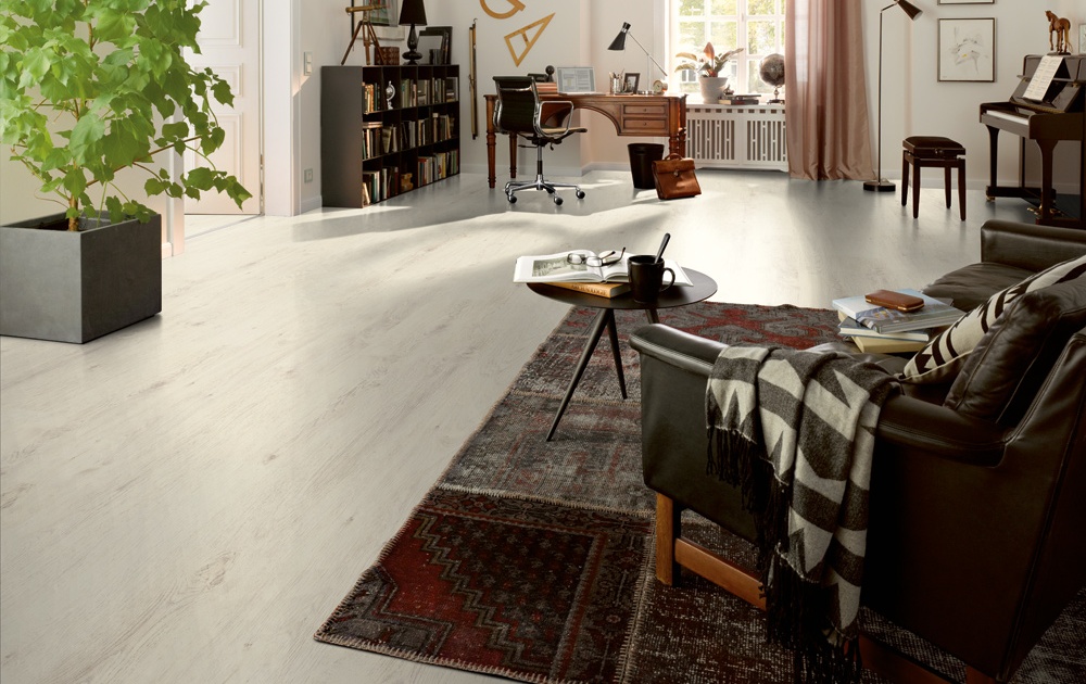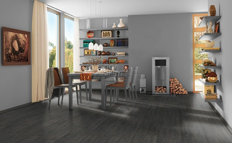 - Le champ d'application du stratifié est très large, de sorte qu'il s'intègrera à tous les intérieurs élégants. Il décorera le hall, la chambre à coucher et sera également utile dans la salle de bain et le couloir, car il possède une couche imperméable renforcée Quell-Stopp. Il est appliqué à tous les éléments structurels.