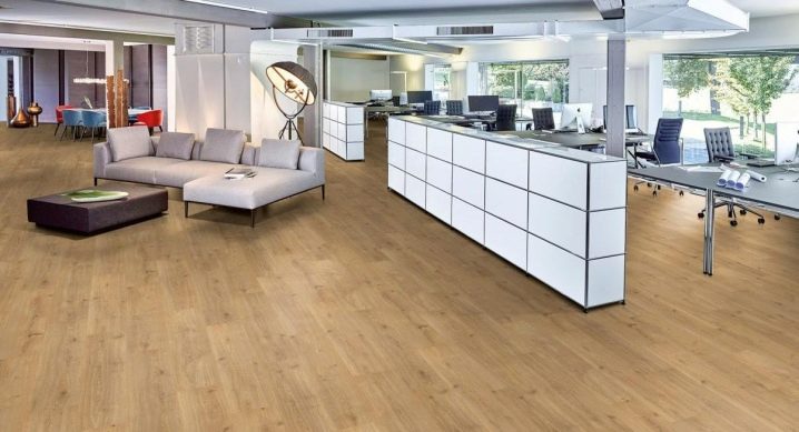 - Long - il s’agit de longues lames de plancher de 2052x248 mm. Ils sont recommandés pour les très grandes pièces, ainsi que pour les pièces combinées, par exemple une cuisine-salon. Les panneaux stratifiés imitent la texture du chêne, de l'épinette, du frêne et du pin.