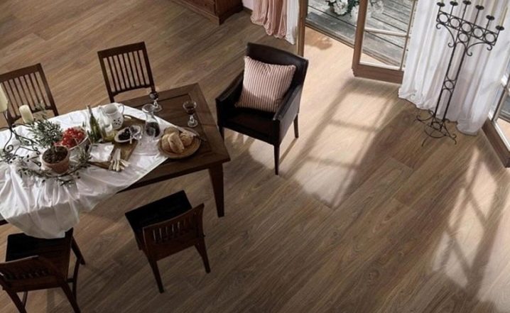 Il existe au total 5 types de structures. Cela suffit pour trouver une option appropriée pour n'importe quelle pièce. Par exemple, pour la salle de bain, vous pouvez choisir un sol chic avec une texture rugueuse sous l’arbre ou sous les céramiques stylisées avec un ornement, et dans le plancher avec des imitations de pierre. Votre choix - surface mate et brillante.