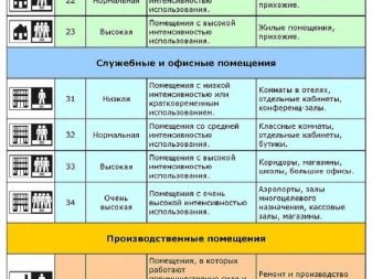 - La classe 33 (collection King Size) peut être utilisée dans les salles de danse, les hypermarchés. Le fabricant promet une longue durée de vie (à partir de 20 ans) tout en maintenant l’aspect.