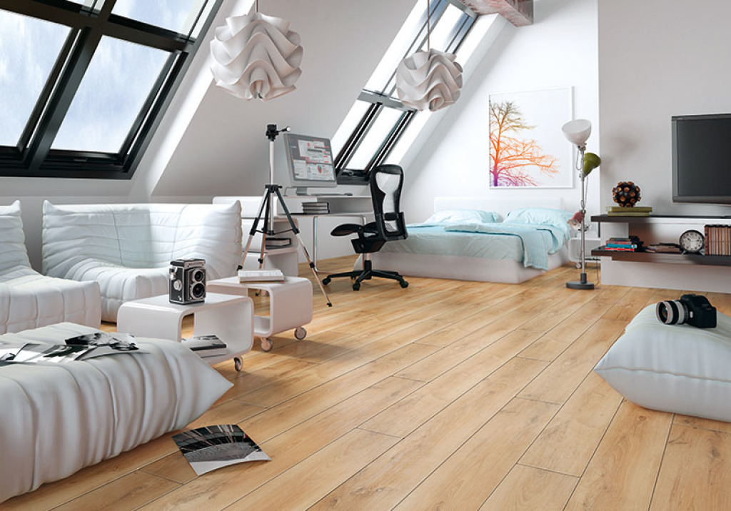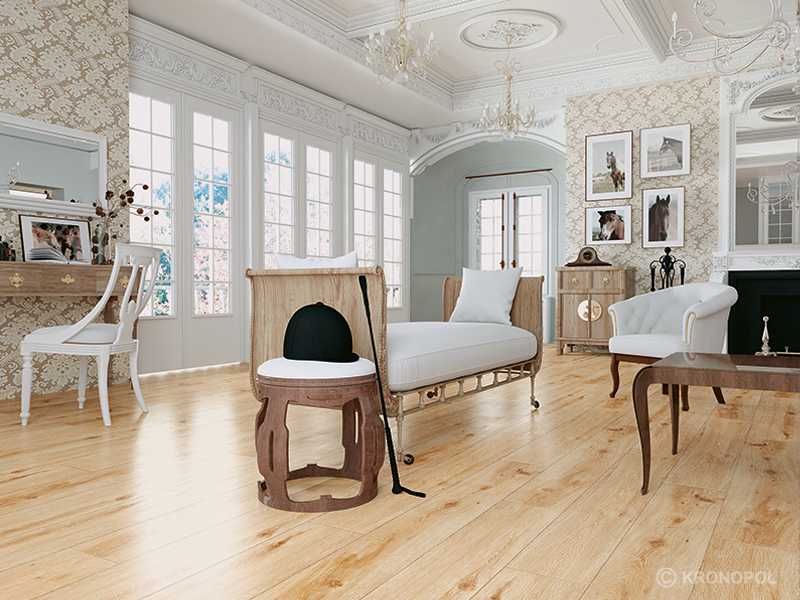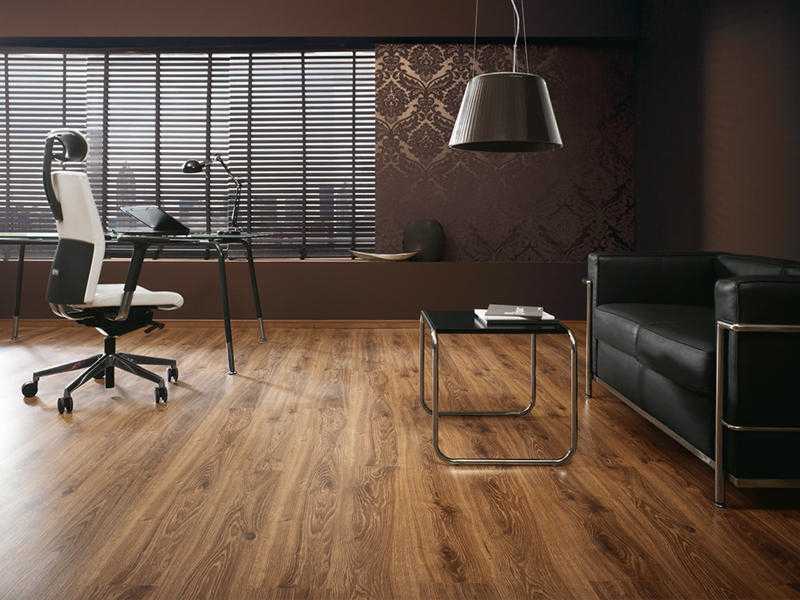 - Kronopol Exclusive - Surface stratifiée de classe 32 avec frottement rustique. L'épaisseur du produit est de 8 mm, largeur - 19 cm, chanfrein en forme de V. Sous il peut être installé de l'eau et un système de chauffage au sol électrique. Dans le paquet de 9 pièces avec une superficie de 2,397 mètres carrés. M. Le coût d'un carré. m est d'environ 900 roubles.