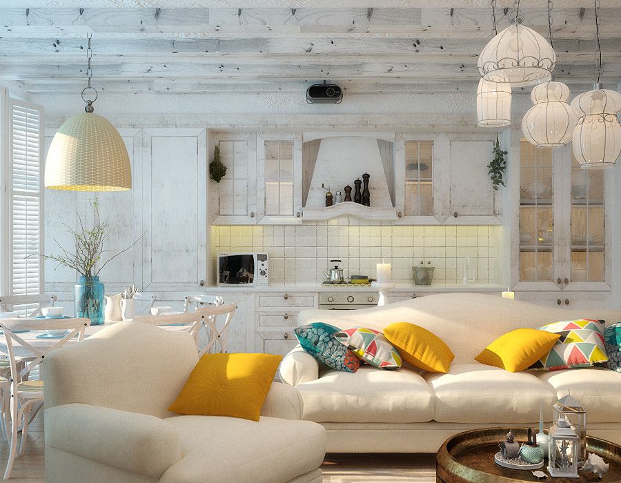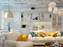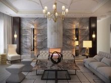 Chambre décorée sous art déco souvent fini en utilisant des formes en zigzag et des lignes courbes. Mais la salle méditerranéenne doit être claire et spacieuse, avec un design optimal et des notes romantiques. Les intérieurs marins comprennent à la fois des peintures réalistes (navires, côte, surface de l'océan, îles exotiques) et des coquillages stylisés, des natures mortes.