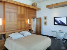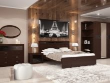 Chambre décorée dans l'esprit Chalet suisse ne bénéficient que de l’utilisation des couleurs stratifiées "frêne" ou "noyer", elles expriment le plus fidèlement ce style. Dans l'habitation provençale, il vaut la peine de préférer des revêtements légers à la texture discrète, comme s'ils étaient légèrement usés. Un bon exemple serait un chêne blanchi avec un chanfrein. Le style japonais est compatible avec les matériaux de finition sombres et clairs, mais encore une fois, vous ne devez pas perturber l'équilibre des couleurs.