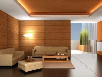 La combinaison de stratifié et de papier peint doit être d'apparence proche, mais de ton différent, la même couleur rendra la pièce fanée et sans expression.La combinaison parfaite avec le plafond - quand au sommet est également utilisé une bande de plaques.