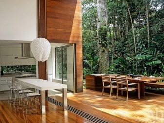 Si vous décorez le mur stratifié à côté de la table à manger, vous pouvez former un coin de nature préservée. Dans une grande ville moderne, cela fait très défaut.