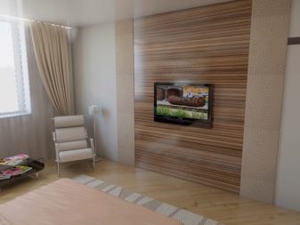 Si vous souhaitez que le stratifié fasse partie de l'habitat vivant et fonctionnel de la chambre à coucher, installez des étagères assorties avec des objets colorés ou décoratifs. Dans les salons dotés d'une cheminée, vous pouvez décorer ce mur avec un mur adjacent ou opposé au foyer - l'atmosphère deviendra extrêmement confortable et conviviale. À partir d’autres ornements décoratifs, vous pouvez appliquer: