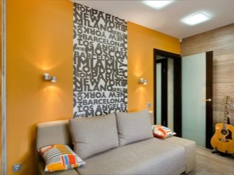 Dans l'appartement avant-gardiste il est permis d'utiliser à la fois des couleurs discrètes en noir et blanc et des couleurs vives et juteuses.La principale exigence sera d'inclure clairement la couverture dans le concept afin d'éviter tout éclectisme. Le style moderne vous permet de choisir en toute sécurité la couleur moutarde, beige. Parmi tous les motifs et images, il convient de préférer les parcelles consacrées aux plantes (fleurs) et aux insectes.