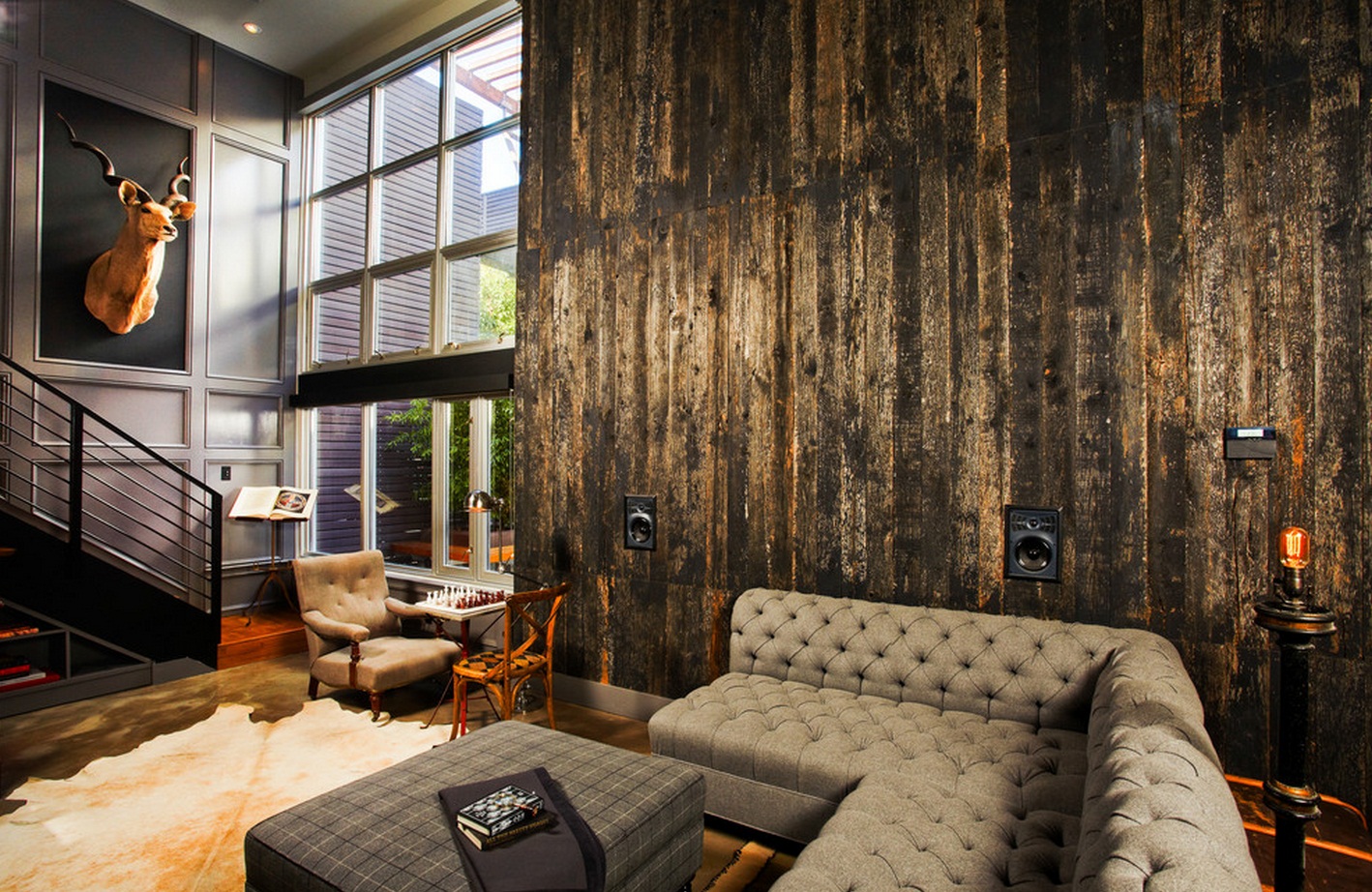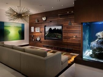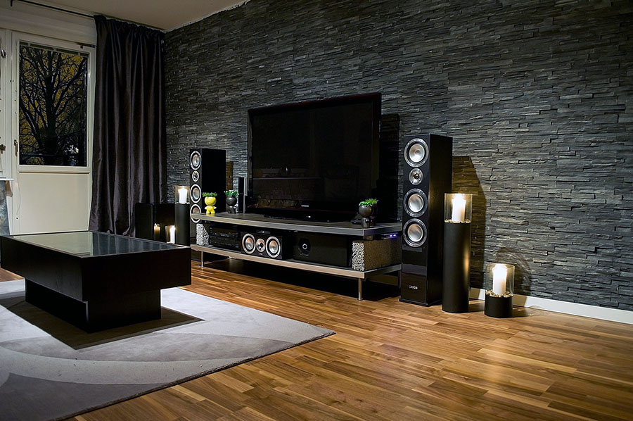 Pour les salles de séjour, il est conseillé d’utiliser du stratifié près du téléviseur, de la cheminée ou avec des meubles rembourrés. Il peut sembler très attrayant en éclairage, étagères suspendues et autres décorations, mais n'oubliez pas que les panneaux ne peuvent supporter qu'une charge limitée!