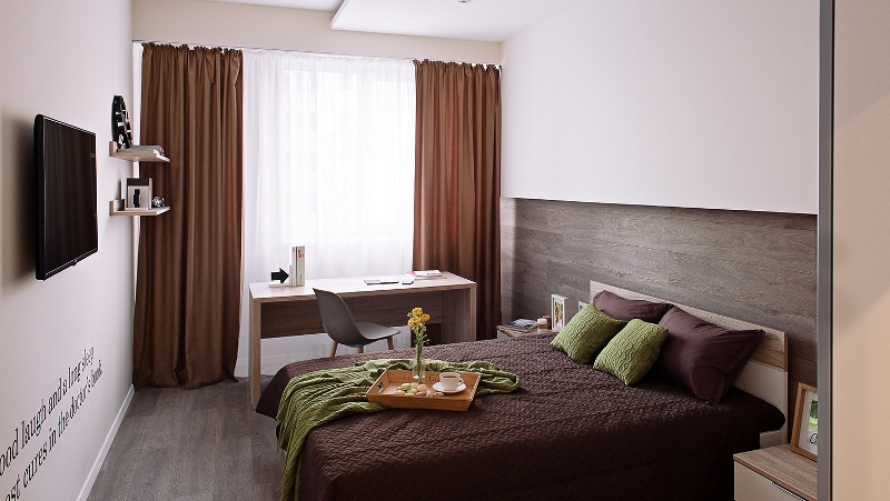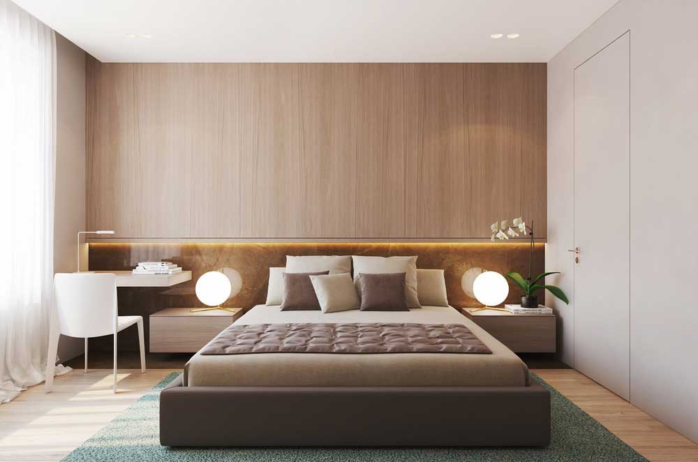 Pour les chambres à coucher, le sol stratifié est utilisé principalement sur les murs en tête des lits et, là encore, son apparence doit être choisie aussi précisément que possible sous les meubles. Le salon sera plus attrayant si le sol est utilisé sur l’un des murs.