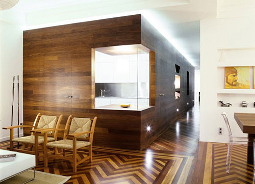 La force de ce revêtement réside dans son effet visuel impressionnant, ainsi que dans sa capacité à diviser la pièce en zones fonctionnelles. Le concept de design peut être quelconque, mais l'utilisation de stratifié aidera à rendre le design plus naturel. Le revêtement est monté facilement et rapidement, son entretien prend un minimum de temps et d'efforts. Une grande variété de couleurs et de textures, l’attractivité externe est ce qui a fait la popularité du stratifié.