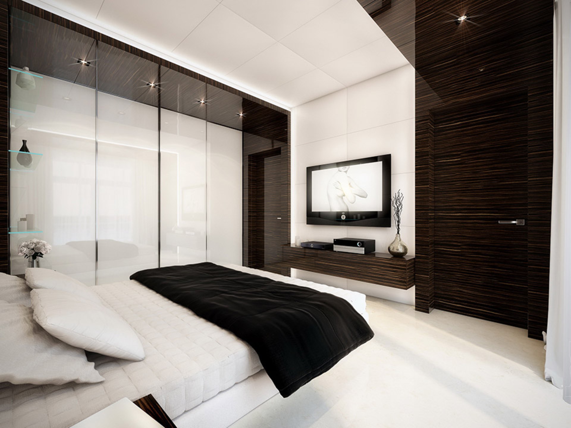 Environnement minimaliste demande plus de retenue et de simplicité, il n’est pas souhaitable d’utiliser plus de trois teintes à la fois. Les meilleures couleurs de cet intérieur sont le noir, le blanc et le milieu entre elles est le gris. Dans un cadre de haute technologie, la couleur de wengé est ajoutée à ces couleurs (de préférence avec un motif flou ou petit). Les fans de l’atmosphère gothique doivent acheter du stratifié à la texture prononcée et peinte dans un ton noir riche.