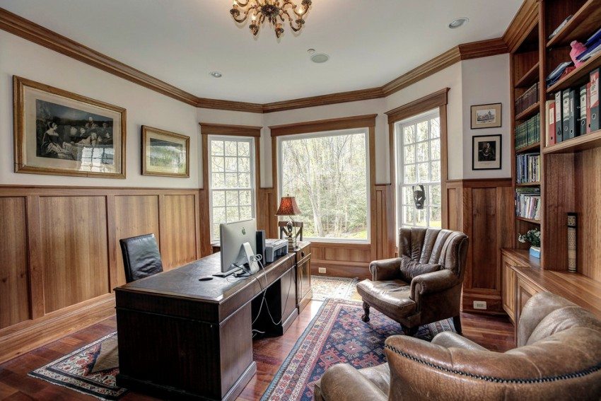 Les teintes de stratifié de chêne clair conviennent à presque toutes les pièces, mais cette teinte et d’autres teintes nobles - bois de rose, hêtre - sont très pertinentes. dans un cadre classique. Si vous allez organiser votre maison dans un format rétro, vous pouvez également choisir les couleurs du chêne. Leurs alternatives sont l’imitation de la cerise et de la tique, et l’effet de l’usure apparente ne fait qu’ajouter du charme.