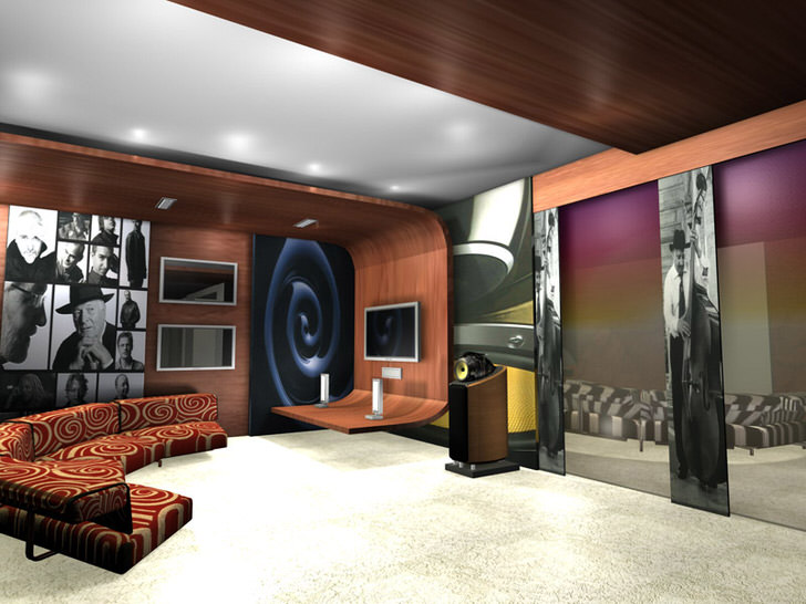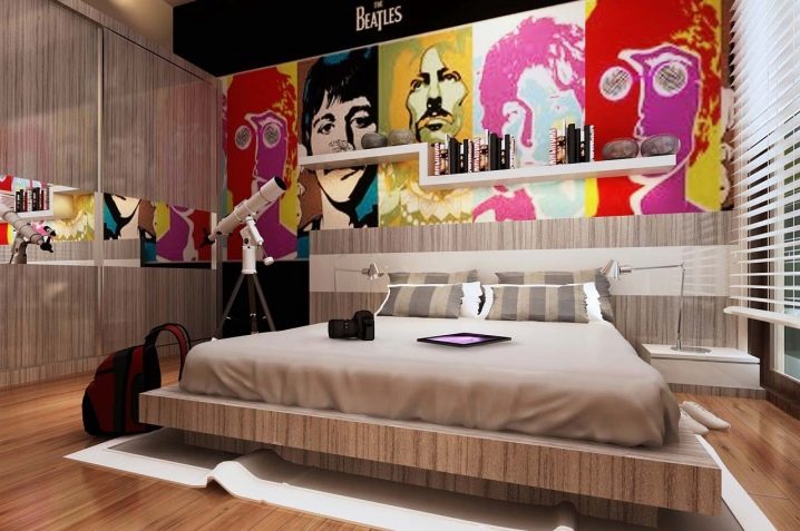 Quand pour la décoration de la salle est sélectionné pop art, il faut faire preuve d’un maximum de créativité, essayer de surprendre avec audace et fraîcheur de l’idée. Différentes nuances de bleu et de vert sont organiquement mêlées à un design de sol, de plafond et de mobilier rebelle.