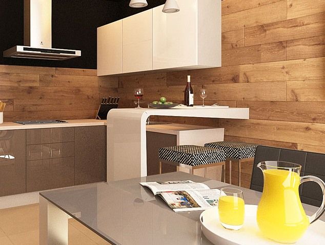 Tabliers de cuisine à personnaliser sous le casque. Dans les chambres, vous pouvez utiliser des panneaux de deux ou trois tons plus riches que les meubles. La couleur du matériau est parfois rendue plus sombre que celle du mur principal, ce qui rendra l'espace plus visuel. Lorsqu'il y a des animaux ou des enfants dans la maison, il ne faut pas choisir des matériaux de finition trop légers.