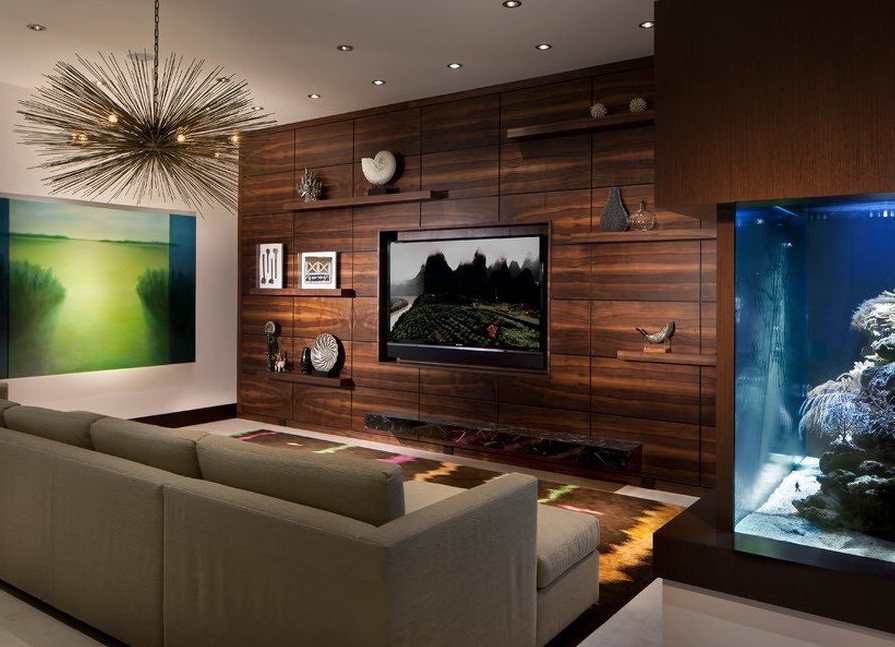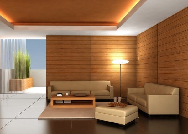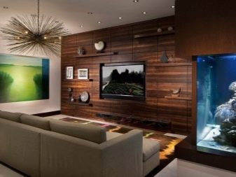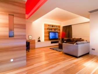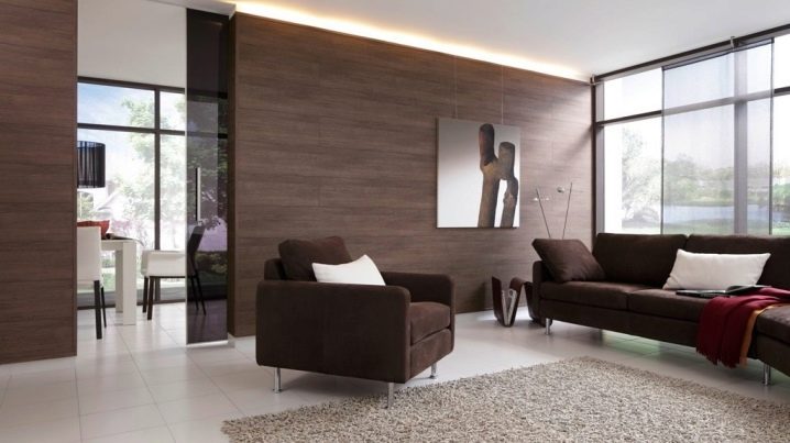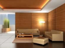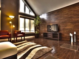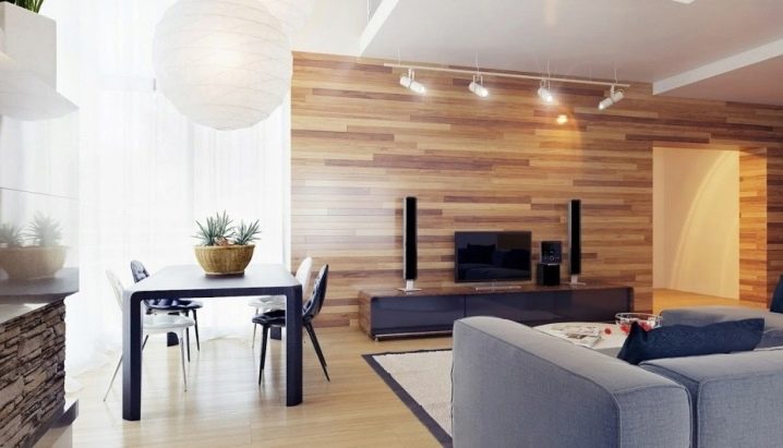 À l'intérieur du salon, à l'aide de panneaux, vous pouvez modifier visuellement les dimensions de la pièce. Lorsque vous installez des planches verticalement, le plafond est soulevé visuellement et horizontalement - l’espace s’agrandit.