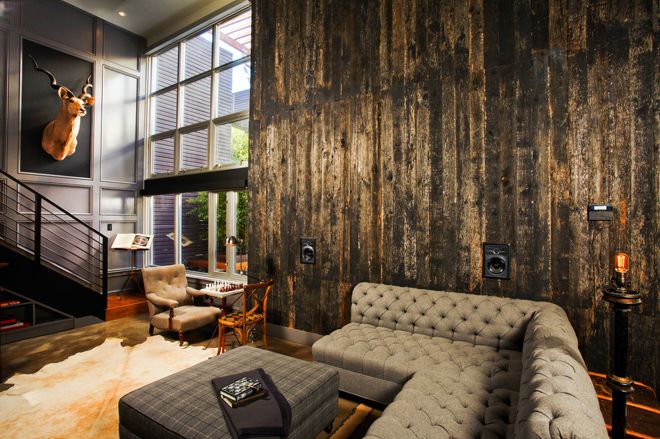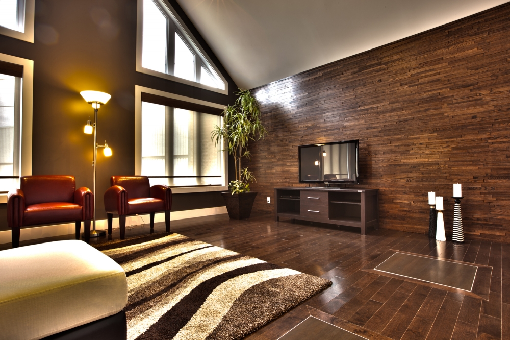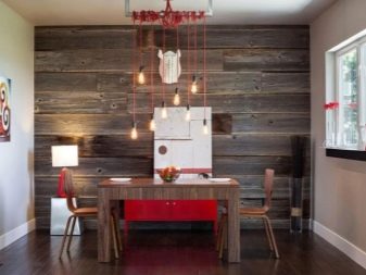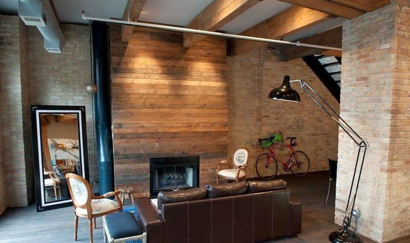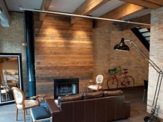 - Le panneau mural imitant un arbre se combine parfaitement avec une brique. Par conséquent, si la pièce est stylisée sous grenier, stratifié sur le mur sera une bonne solution. Étant donné que ce style se caractérise par un grand espace ouvert, le mur laminé aidera à créer un accent brillant et à délimiter la pièce.