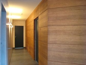 Les couloirs dans les appartements sont généralement assez étroits. Par conséquent, un laminé adhésif monté sur un mur en béton est un bon moyen d'éviter des réductions d'espace supplémentaires.