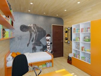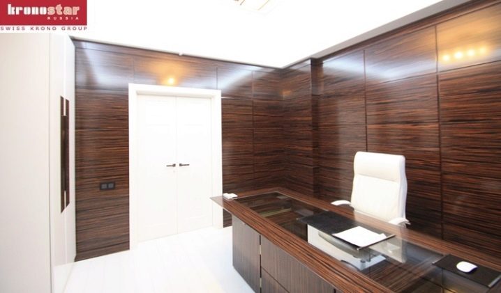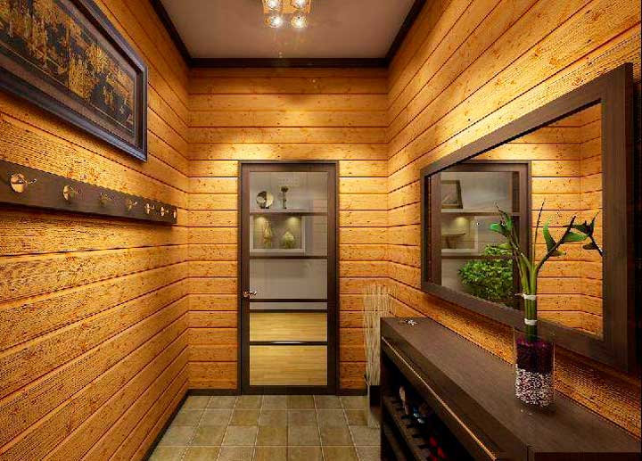 Du fait que les planches sont faciles à couper, elles peuvent être conçues comme toute la surface et sa partie. S'il y a une niche dans la pièce, il est assez simple de la sélectionner en utilisant un stratifié. Facilité d'installation vous permet d'utiliser un tel revêtement non seulement sur les murs, mais également au plafond.