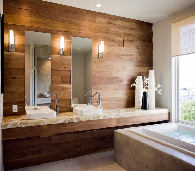 - Pierre Finir la surface avec de la pierre naturelle est un travail difficile et coûteux.Le style de haute qualité cache beaucoup d’espace et la pièce devient froide. Le panneau laminé copie parfaitement la pierre, et l'installation est rapide et facile.