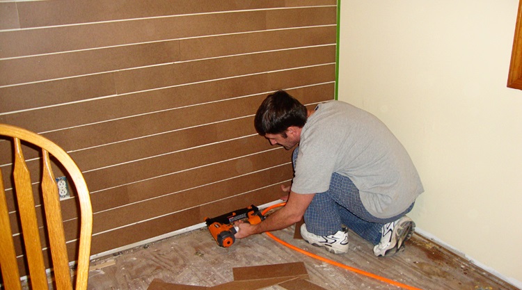 De tels types sans colle permettent aux joints de rester secs, ce qui élimine la possibilité de souiller le revêtement. Le stratifié sur le mur est monté avec une latte de barres de bois ou de métal. La hauteur devrait être de 30 à 40 centimètres. La surface du mur avec ce type de montage ne nécessite pas d'alignement et l'isolation phonique et thermique est généralement placée dans l'espace qui en résulte.