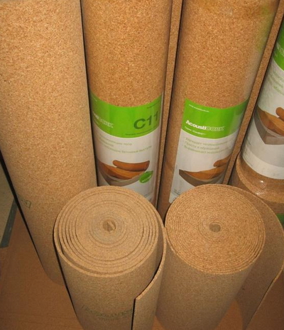 Le substrat en liège pressé est disponible en plusieurs versions: en caoutchouc, en bitume, en miettes de chêne-liège. Dans les magasins, vous pouvez trouver des rouleaux et des feuilles coupées de ce type de substrat pour laminés.