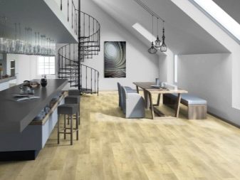 Pour poser dans des pièces très humides (salles de bains, salles de bains, terrasses), utilisez du vinyle stratifié 34 classes. Dans la production de tels panneaux, on utilise une technologie fiable qui offre une résistance à l'eau.