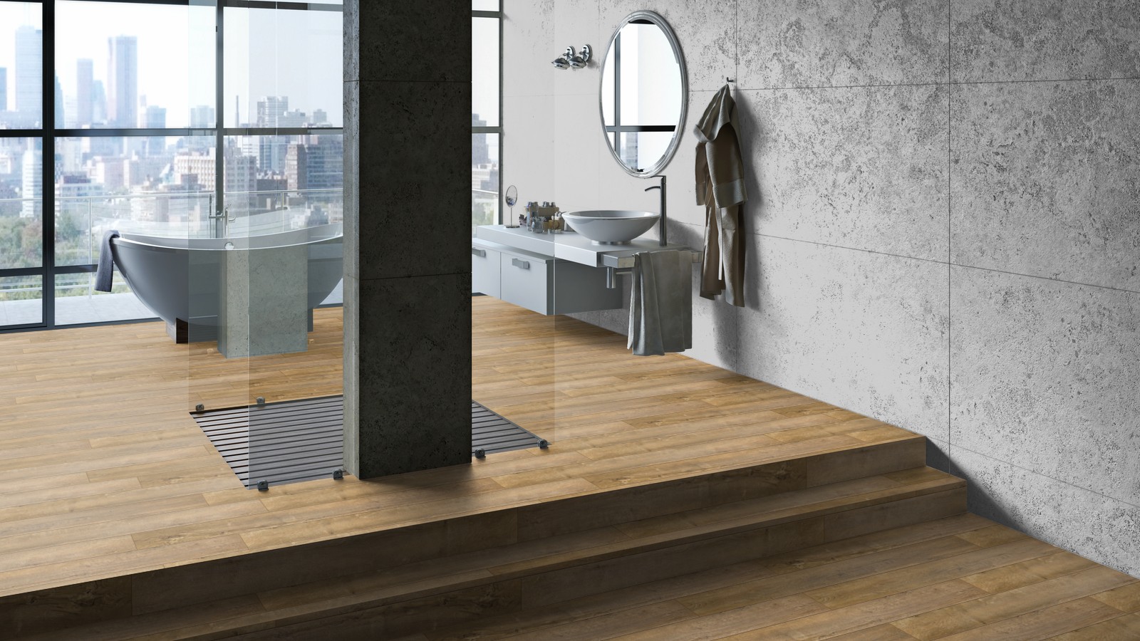 De nos jours, le stratifié de vinyle gagne en popularité et est utilisé dans les pièces très humides, telles que les salles de bain, les toilettes ou les terrasses extérieures. Tarkett présente de nouvelles collections de stratifiés de vinyle présentant des caractéristiques de production très différentes. technologies utilisées et solutions de conception: