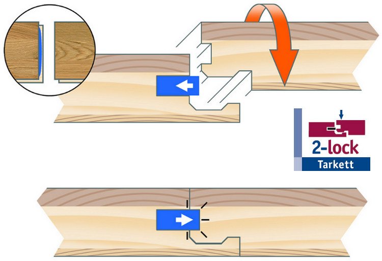 La société européenne Tarkett a mis au point et introduit un système de verrouillage pour la production de panneaux de sol stratifiés. T-lock. Il vous permet non seulement de connecter rapidement et facilement les lamelles, mais également de créer un joint presque invisible et fiable. Grâce à un tel système de verrouillage, il est possible de supporter l'installation du stratifié même sans consulter des spécialistes.