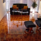 Le gothique raffiné et solennel se combine encore mieux avec les revêtements de sol de couleur noire, surtout s’ils présentent un motif de texture prononcée. Les tons orange valent la peine d'être utilisés par les amoureux pop art, ils soulignent idéalement l’originalité et la portée créative de l’idée. Pas moins mal sera perçu la peinture bleue, violette ou verte, surtout si vous choisissez un matériau élégant avec un biseau.