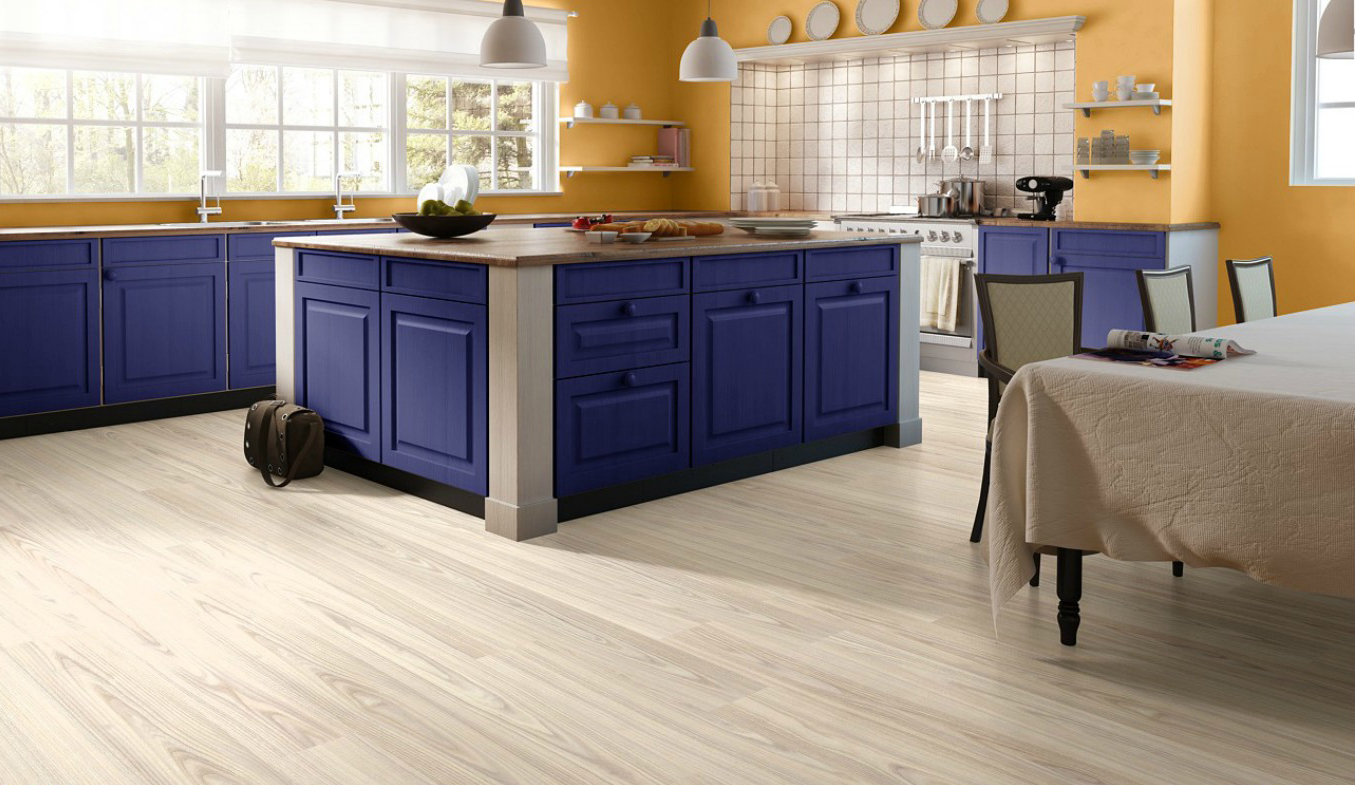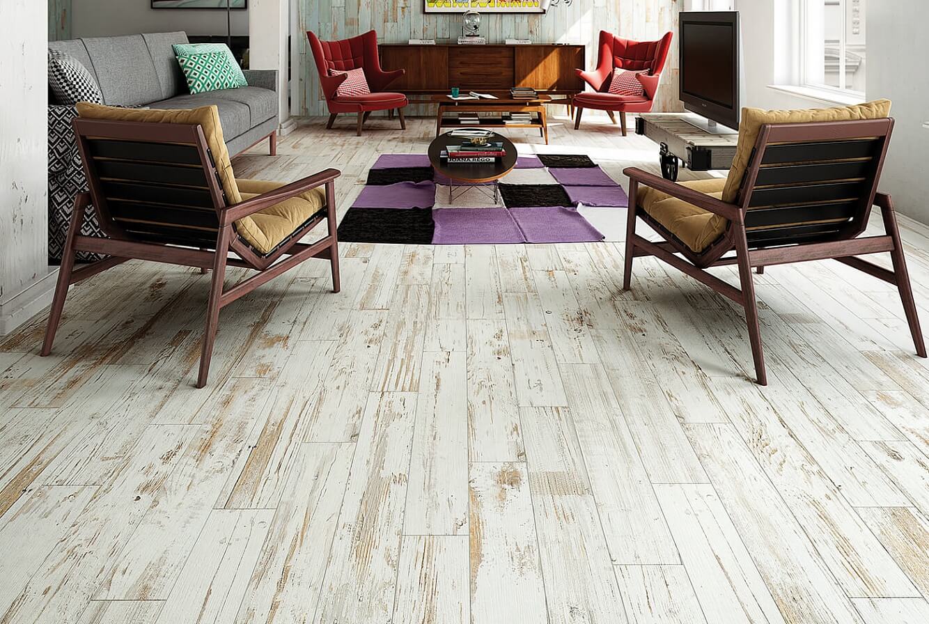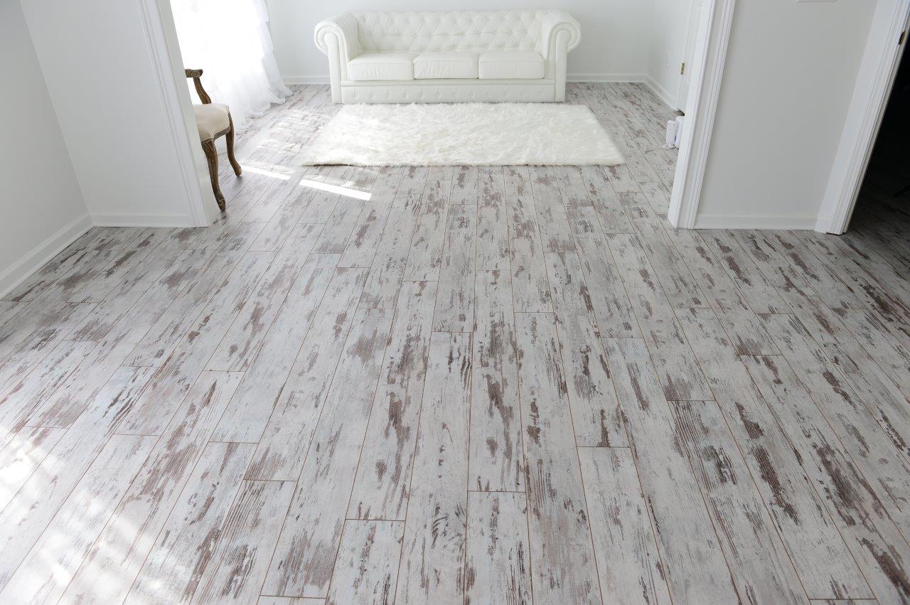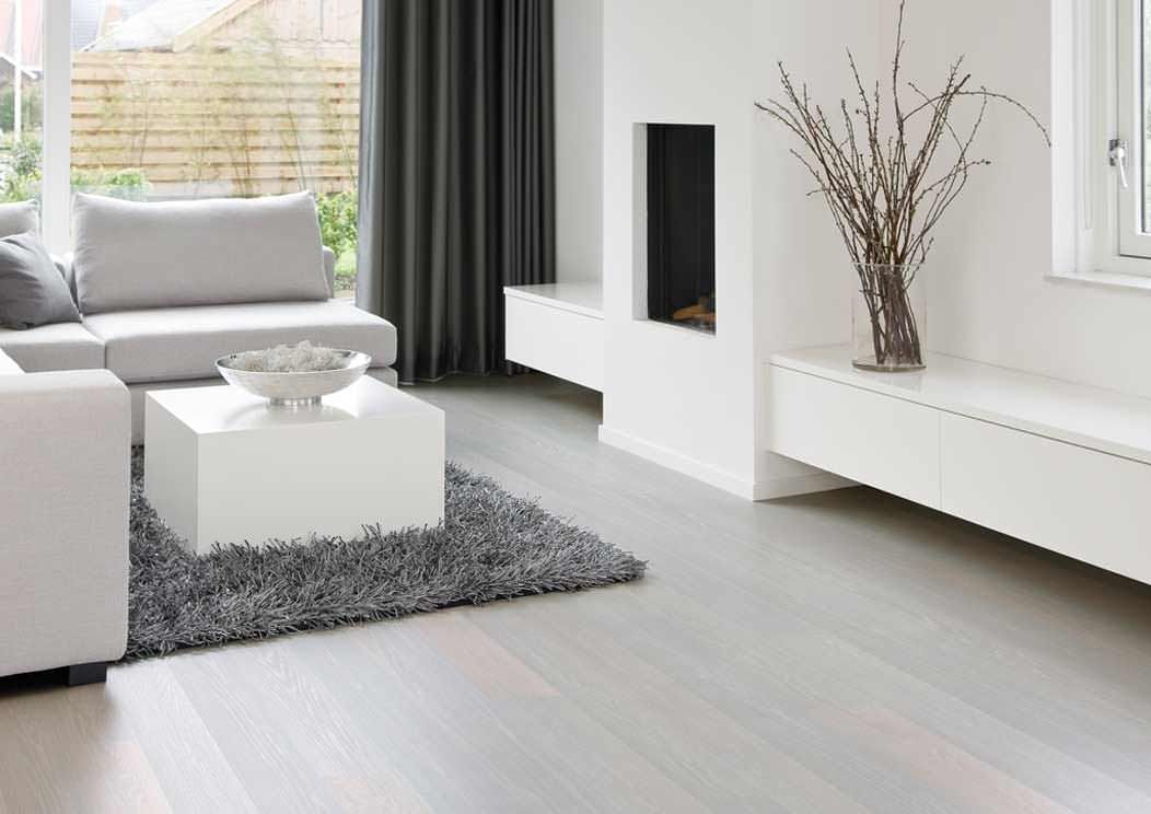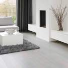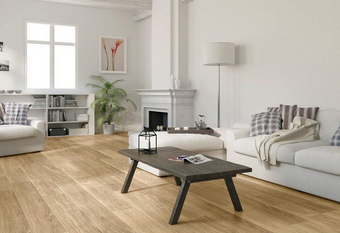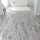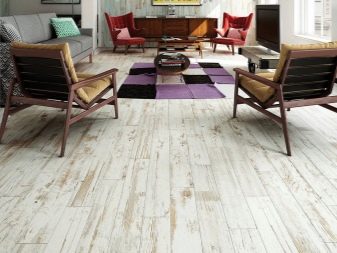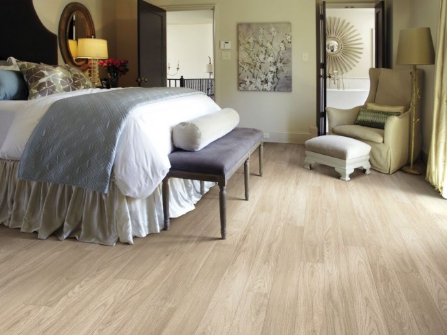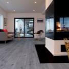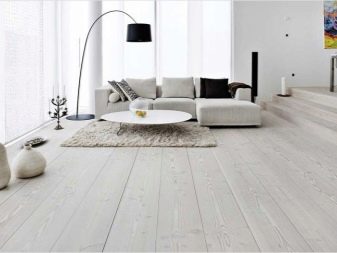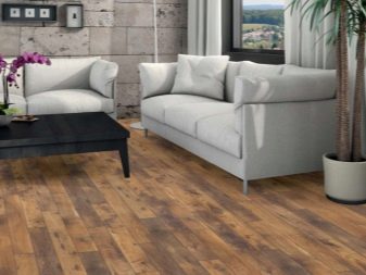 La solution de couleur spécifique est plus appropriée pour choisir en fonction du style de la pièce que vous décidez d'équiper de stratifié. Le chêne blanc pénètre de manière optimale à l'intérieur de la Provence, ainsi que dans diverses nuances de pastel. Dans une telle pièce il est préférable d'utiliser un revêtement de chanfrein, il accentuera la texture vieillie encore mieux que d’habitude.