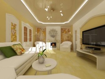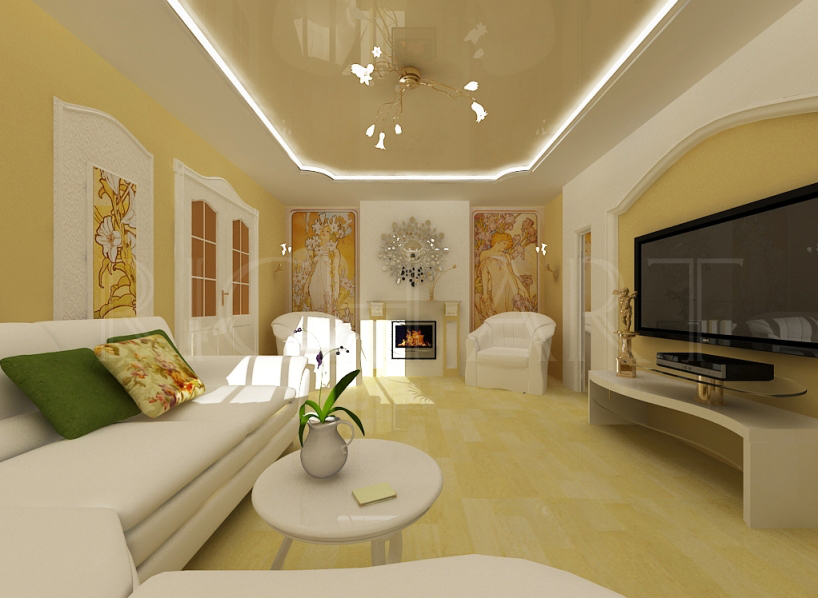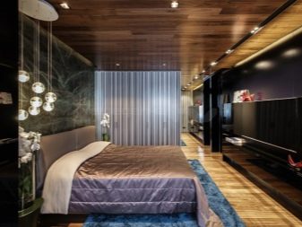 Les plafonds doivent être en harmonie avec l'apparence des murs et du sol, mais ne pas fusionner avec lui jusqu'à la perte complète de leurs frontières. Soyez très prudent, si nécessaire, consultez des designers expérimentés.