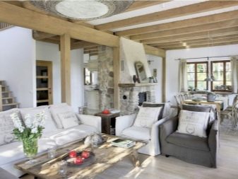 La peinture sous les cendres ou les noix est appropriée dans un chalet suisse, car ce style implique des combinaisons uniques et confortables de motifs de pierre et de bois. La seule condition est la compatibilité totale du revêtement avec d'autres détails intérieurs.