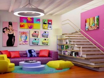Les possibilités de conception lors de l’utilisation du stratifié sont suffisamment grandes. Si vous souhaitez apporter des notes de chaleur et de confort dans la pièce, vous devez appliquer un revêtement reproduisant la toile. Il est facile de rendre une pièce plus originale et intéressante si vous choisissez des scènes imitant l’art du rock ou des motifs abstraits. Dans la chambre des enfants, les personnages sont des séries de dessins animés, des livres de fées, des films et des romans d'aventures appropriés. Le stratifié, disposé obliquement et ressemblant à la pierre ou au marbre - c'est une décision très élégante et compétente.
