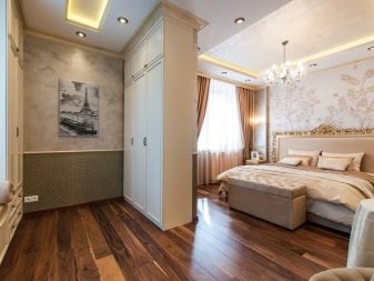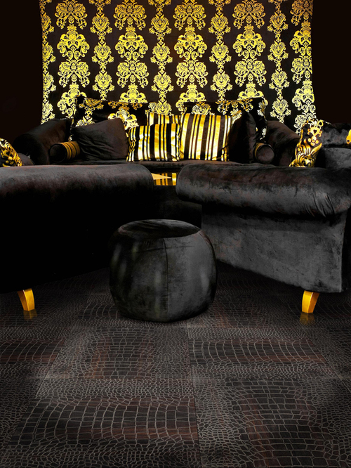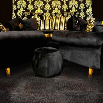 La couverture, réalisée sous la peau d'un crocodile, apporte invariablement une touche de glamour et de sophistication dans la pièce et confère une atmosphère exotique, même si toutes les autres parties sont assez communes.Une variante sous un arbre blanc est stylistiquement très différente, elle crée simultanément une sensation de chaleur et agrandit une pièce inutilement étroite. Le chêne ou d’autres essences de bois, imitées par la surface du stratifié, auront un aspect encore plus élégant si le mobilier de la pièce a exactement la même couleur.