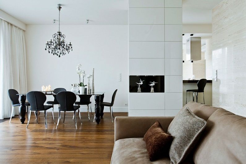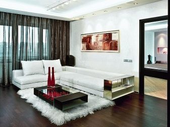 Espace minimaliste toujours restreint, simple et correct, car l'abondance de couleurs différentes ici ne sera pas naturelle. Les tons blancs, gris et noirs sont considérés comme les plus justifiés. Pour sélectionner plus précisément le type de conception, vous devez consulter le concepteur.
