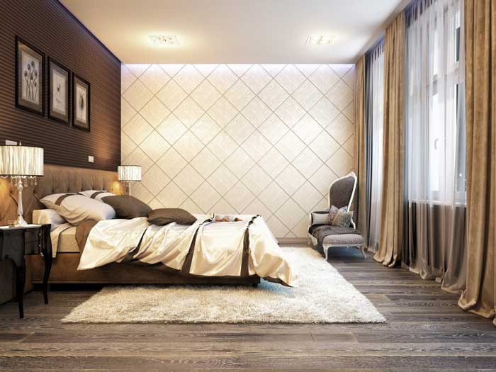 Dans la chambre à coucher, ce revêtement est capable de transformer un intérieur très simple et peu exigeant, pour le rendre vraiment original.