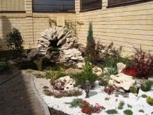 - Évitez de placer un jardin de rocailles près d'un mur ou d'une clôture, il est correct si l'arrière-plan est de nature végétative. Il est également déconseillé d’être trop près de la maison, car en hiver, il est possible que la neige tombe du toit.