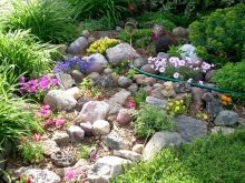 Après avoir terminé le calcul du jardin de rocaille, vous pouvez penser à la manière dont il sera encadré - une pelouse ou plusieurs plates-bandes. Il est préférable que les plantes dans les lits soient partiellement les mêmes que sur la colline.