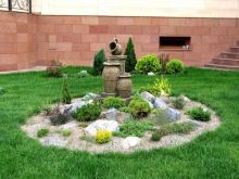 - La composition doit être visible de tous les coins de la parcelle pour pouvoir être placée dans des zones ouvertes.La présence d'arbres près du jardin de rocaille n'est pas souhaitable, car d'une part, il sera difficile de nettoyer la colline de feuilles mortes à l'automne, et d'autre part, un grand arbre proche de la colline peut le supprimer, ce qui en déforme la taille réelle.
