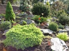 Les conifères, par exemple, genévrier, cyprès, thuya - constitueront la base des glissades. Organiquement s'intégrer dans la composition de rocaille et arbustes: rhododendron, genêts, amandes, airelles.