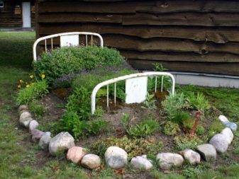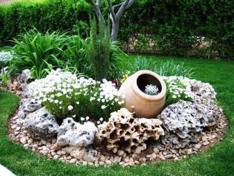 Si le propriétaire possède une petite partie du jardin ou s’il n’est pas possible d’investir beaucoup dans la conception du jardin en rocaille, vous pouvez vous reporter aux matériaux disponibles dans chaque garage ou débarras. Vaisselle cassée, vieux pots, gravats, pierres, tout vous sera utile. Un bain de bébé dégoulinant en présence d'une pensée artistique de la part du propriétaire peut devenir un objet d'art intéressant. Et la présence de trous aidera à éviter la nécessité de drainer le sol. Certains artisans convertissent même des bassins et des bains en bassins au pied du jardin de rocailles.