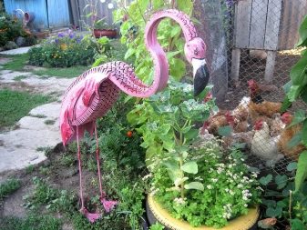 Si le propriétaire souhaite décorer davantage sa diapositive, vous pouvez recourir à la technique de la fabrication artisanale. Hommes de jardin en papier mâché ou en paniers tressés à partir de tubes en papier, ou peut-être de pots originaux de bouteilles en plastique.