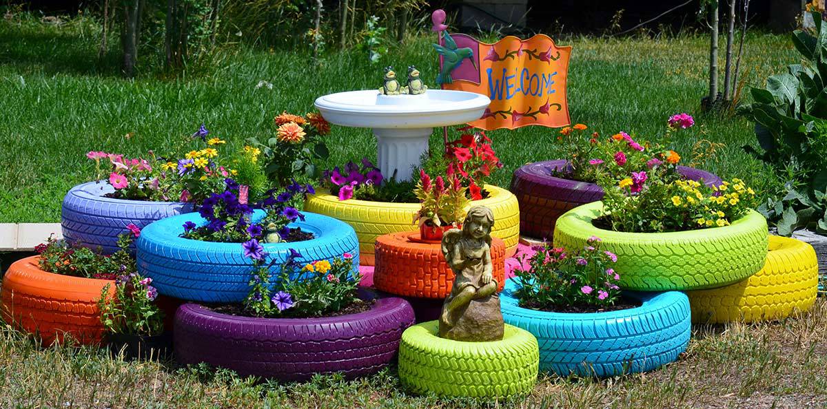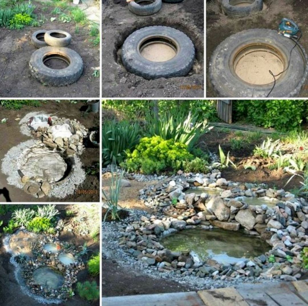 Le remplacement de matériaux naturels peut être un vieux déchet de pneus de voiture. Ils constitueront une excellente base pour les montagnes russes. Un pneu suffit pour un petit jardin de rocaille, et si vous en prenez quelques-uns, vous pouvez former des étages, ce qui jettera les bases de la future structure en terrasse. De plus, les pneus peuvent faire saillie du sol, en tant que partie indépendante de la composition, et peuvent être cachés des regards indiscrets, ce qui les soutient de l'intérieur.