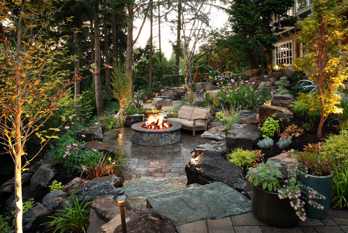 Le complément Rock Garden peut être un jardin de fleurs, des parterres de fleurs (ou plusieurs), une belle pelouse, qui peut également s’enrouler autour de la colline. On dirait un grand étang ou un étang au pied de la colline, encore mieux s’il se jette dans une petite cascade ou une cascade située à flanc de montagne.