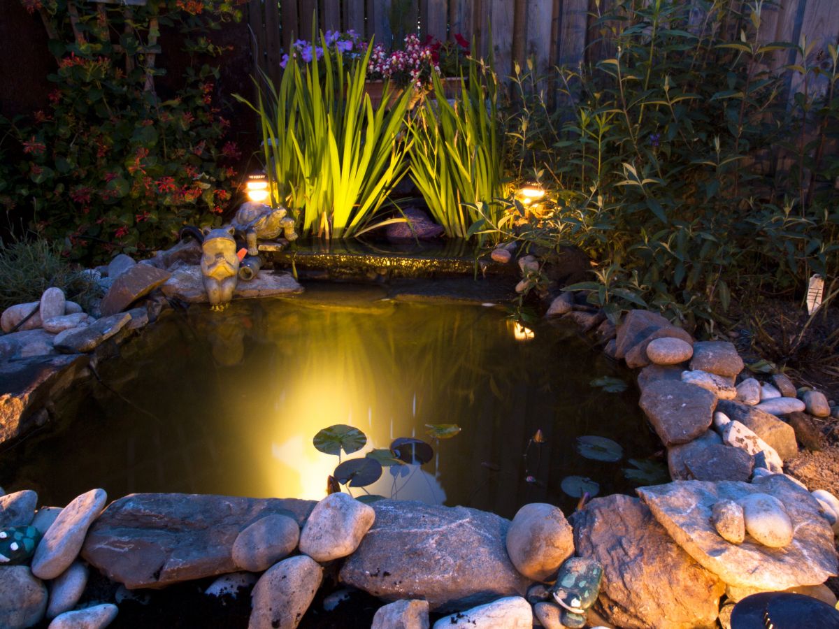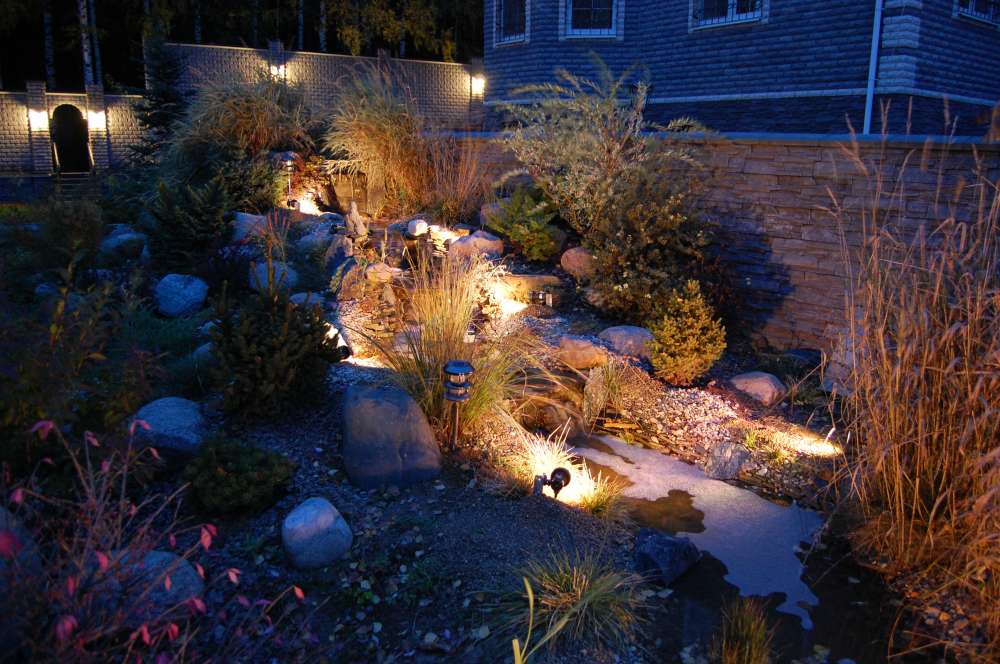 Vous pouvez définir le rétro-éclairage autour du périmètre de la colline ou sur chaque niveau. Dans le cas où il y aurait un réservoir, une lampe imperméable y serait très belle.